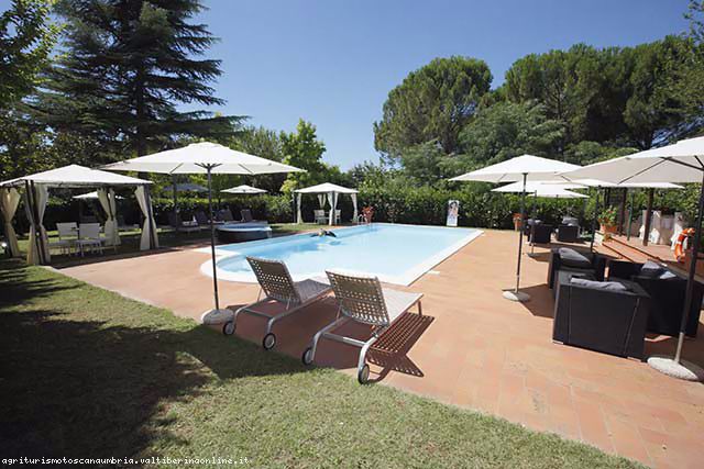 L'ampio giardino esterno che circonda la piscina è l'ideale per trascorrere momenti di piacevole relax.